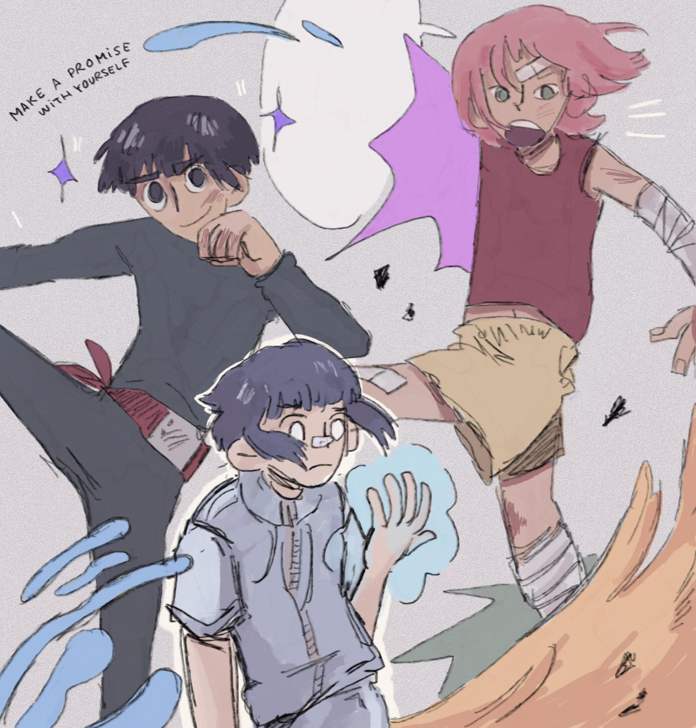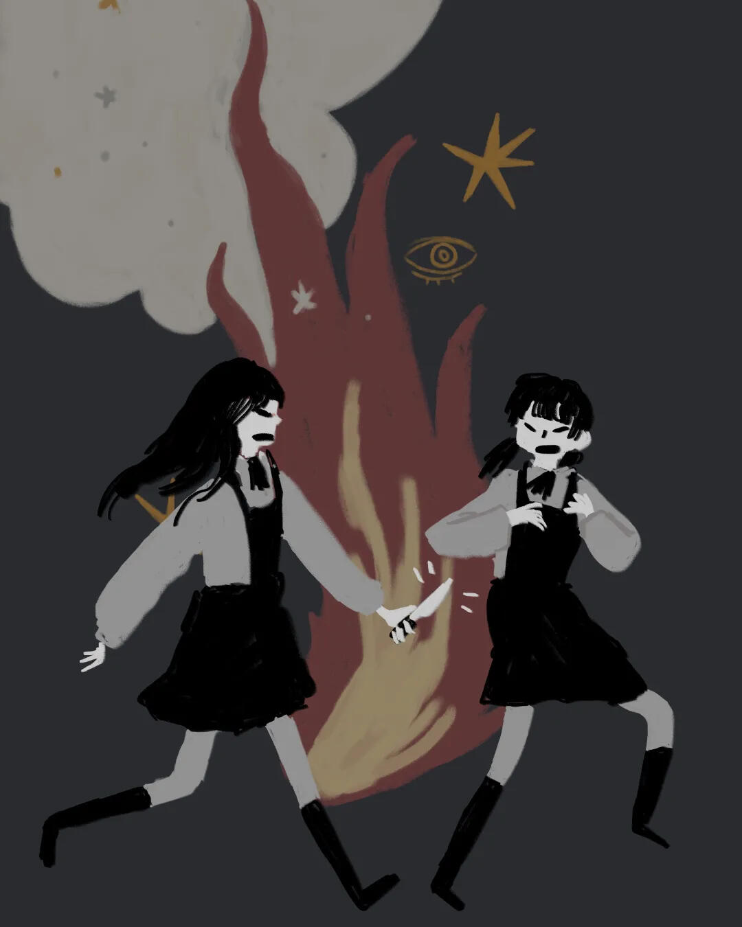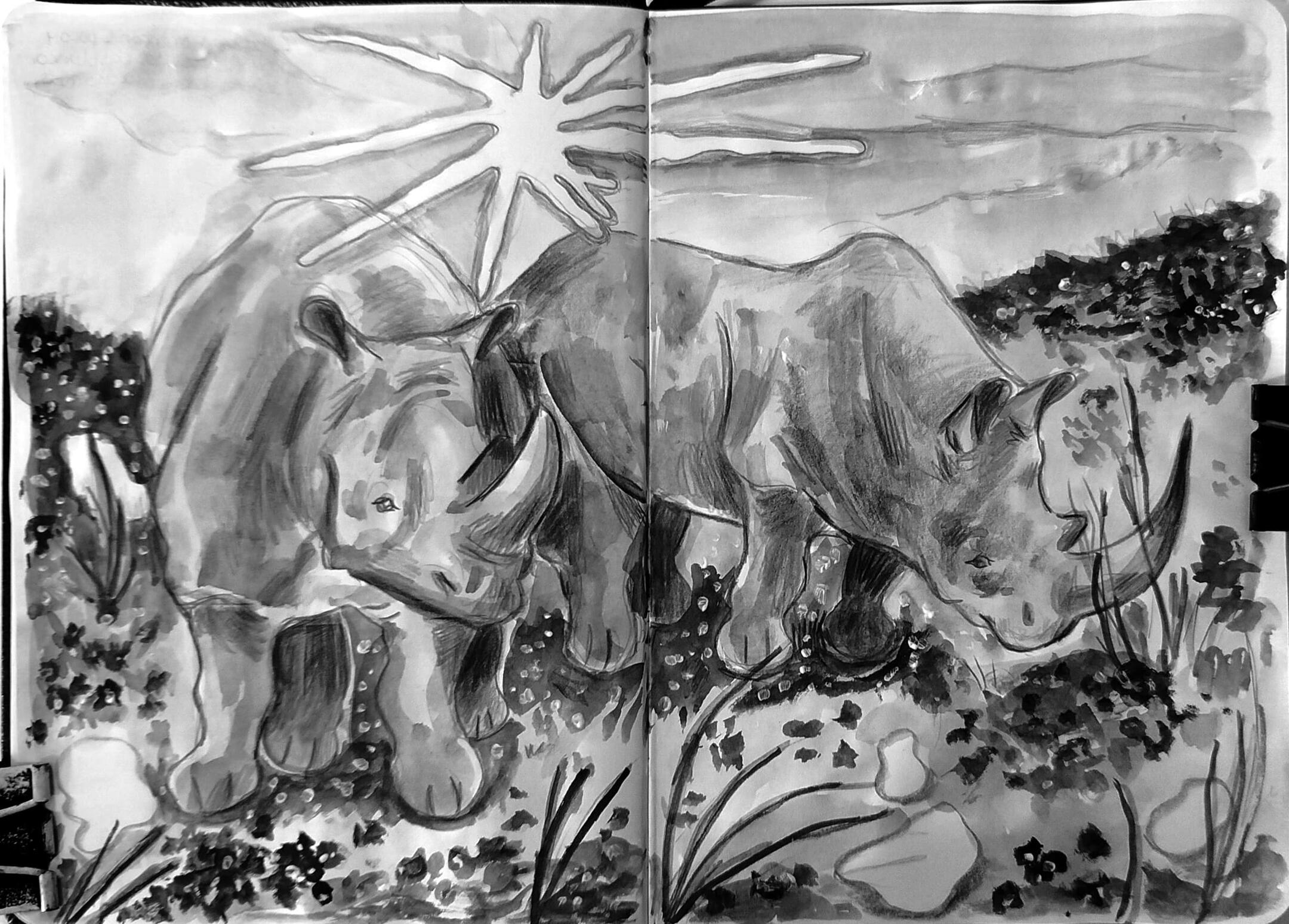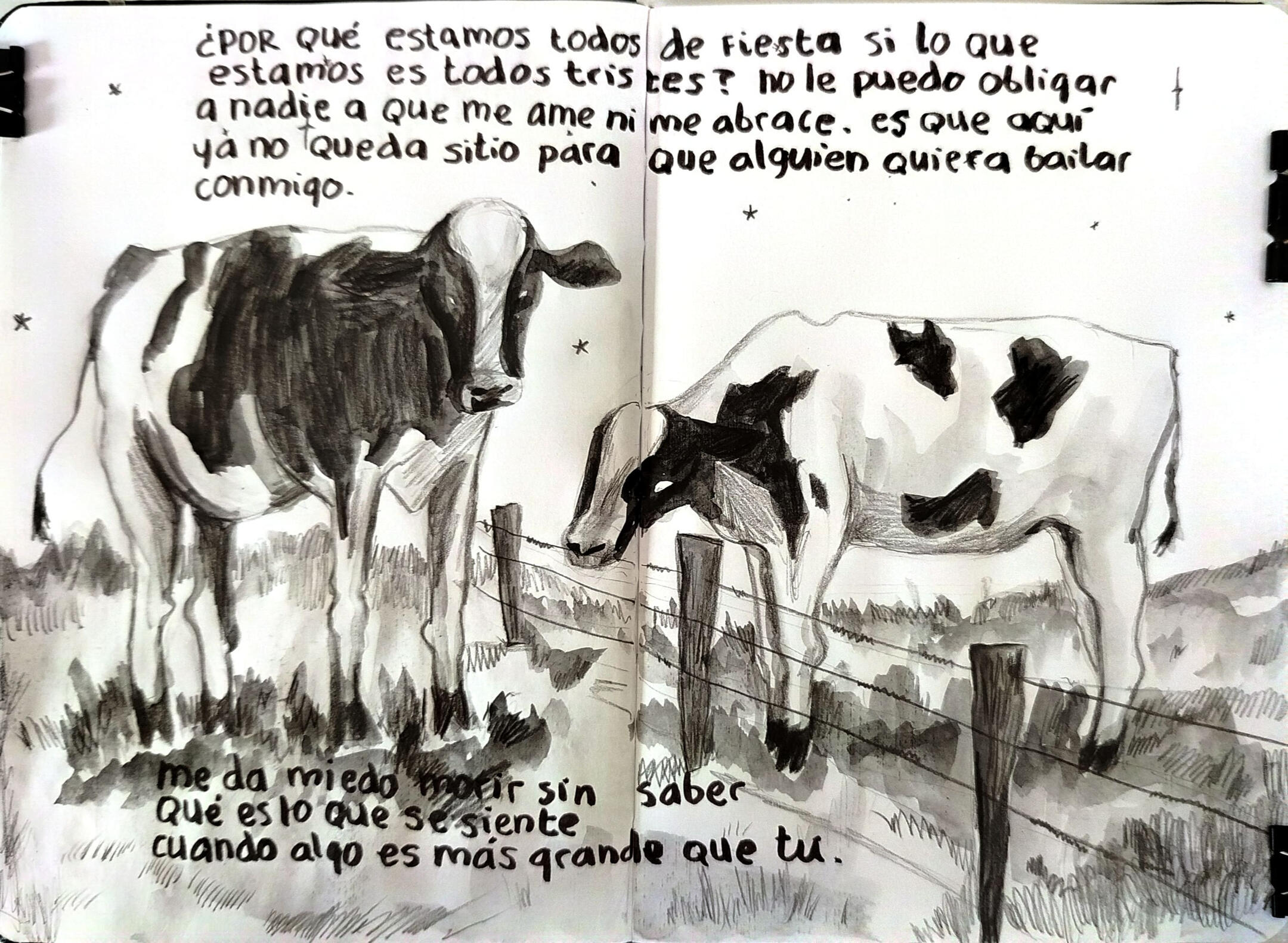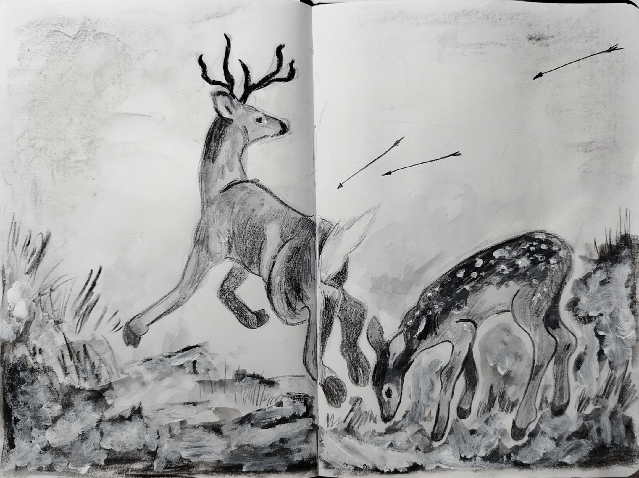 my sketchbook is all about charcoal, black watercolor, wasted pencils and white acrylics. this is how i found a way of expressing myself best, through little animals and quick traces and paint stains.and then, there come my ocs, a group of young ones exploring a world they barely know, waiting for something bigger to happen. i have drawn them for years, and my style has evolved anytime i dedicate a couple of hours to think how is their life going (probably not very good so far.)